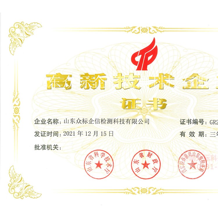 2021年度高新技术企业证书