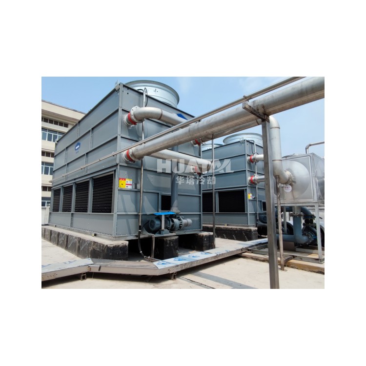 闭式冷却塔系统在中央空调等暖通领域主要冷却水冷螺杆机、溴化锂机组、地源热泵等,闭式冷却塔系统不结垢的优势有效控制污垢系数。近日江苏华塔采用低温恒压变频冷却系统,使用闭式冷却塔与水冷螺杆机组组合使用,秋冬季使用闭式冷却塔,夏季使用冷冻机(同时闭式冷却塔冷却冷冻机),系统实现自动切换控制,为客户每年节约电耗2/3。