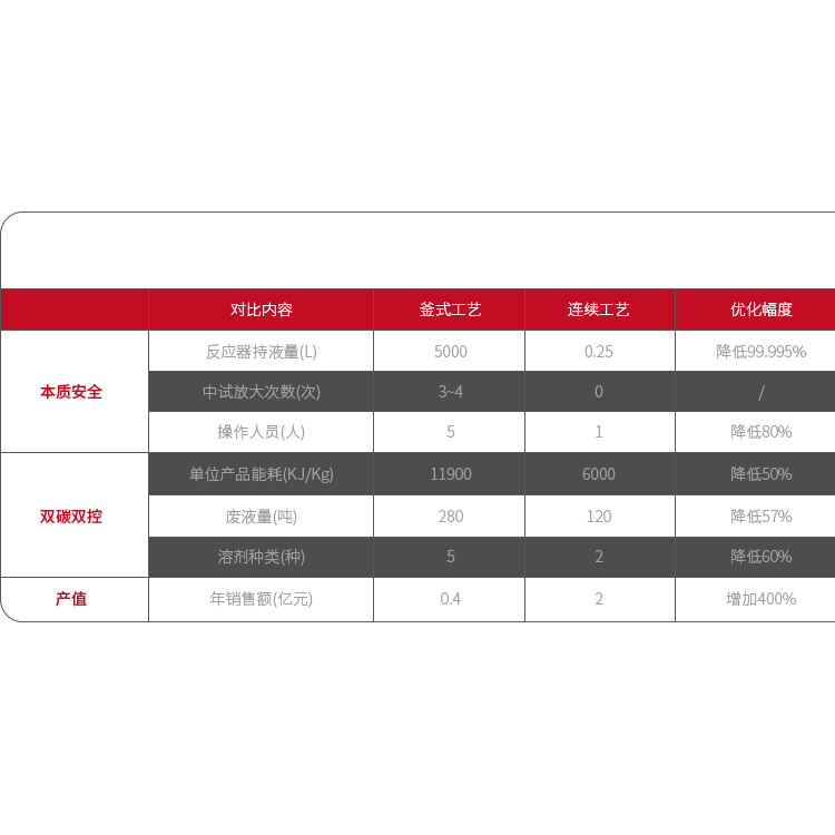 2021年开发的**中间体低温反应装置,可实现有机金属拔氢、连续甲基化、和连续淬灭三步连续反应,通量10000吨/年,产能50吨/年。运行平稳工艺弹性良好,提升反应温度实现能耗降低,成为业主方重点推荐项目。