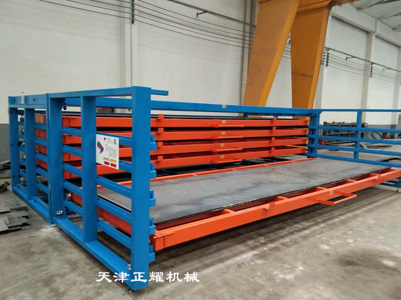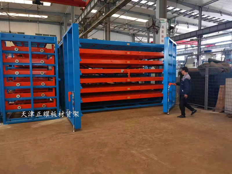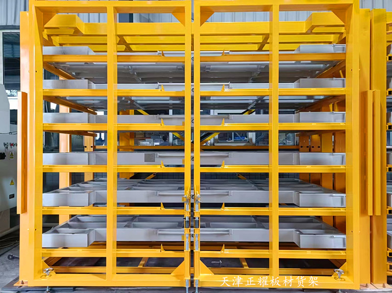 抽屉式板材货架的操作也便捷。当需要取出板材时,只需将对应的抽屉拉出或摇出,然后使用吊车吸盘或其他吊装设备将板材吊装到使用地点或激光切割机上完成切割工作。剩余的板材可以继续存放在货架上,方便下次使用。这种设计不仅减少了板材的挪动次数和损伤风险,还提高了工作效率和板材的利用率。