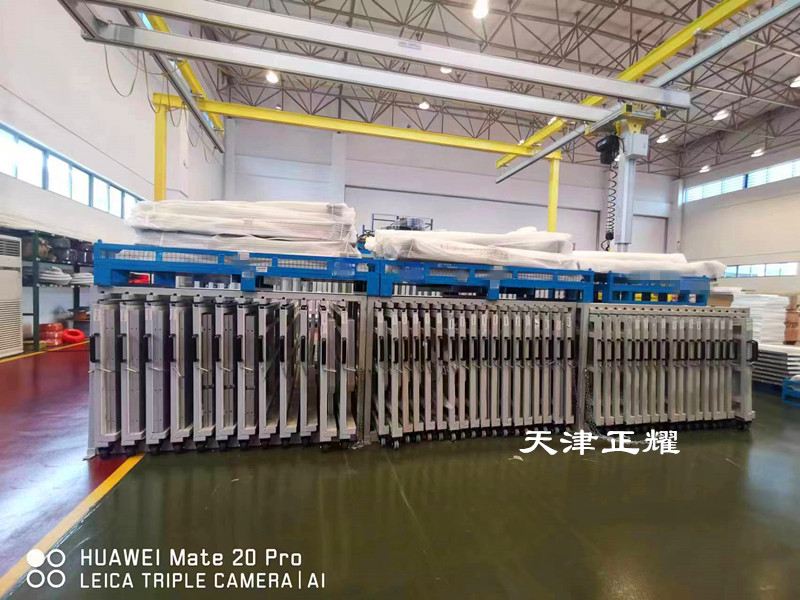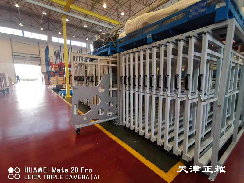 立式板材货架采用了新型的设计,由多个拉出式单元格组成,每个单元格可以存放500公斤的板材。单元格底部配备了轮子,使得单人单手即可轻松拉出使用。这种设计提高了板材的存取效率,减少了人力物力的消耗,同时也降低了工作过程中的安全风险。