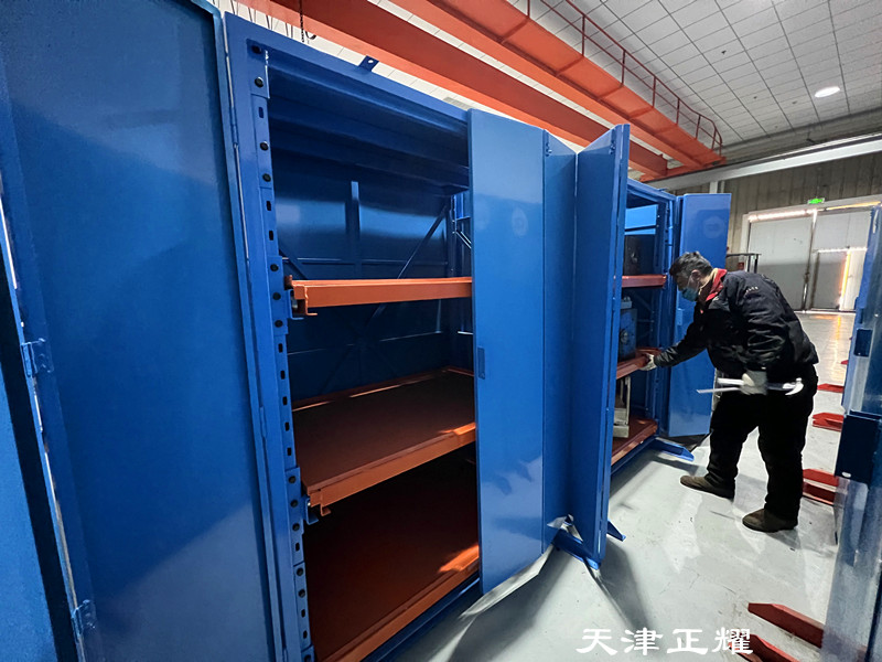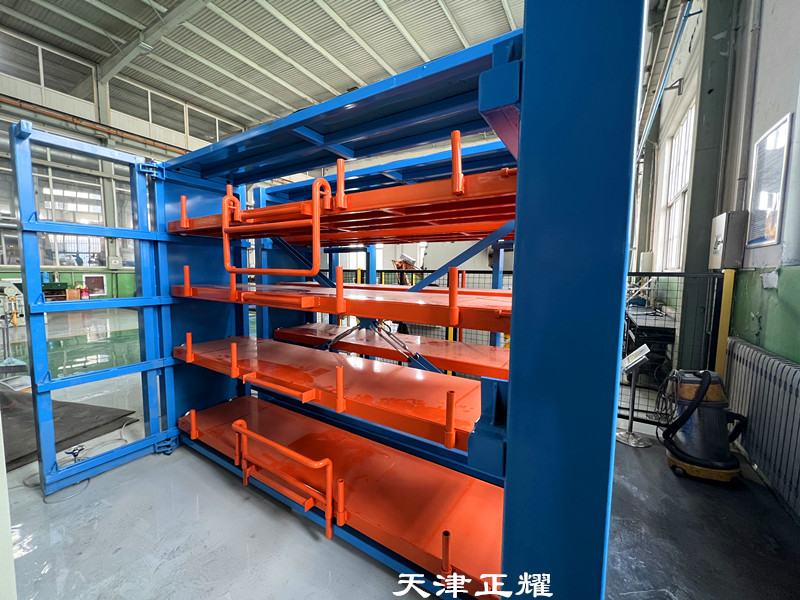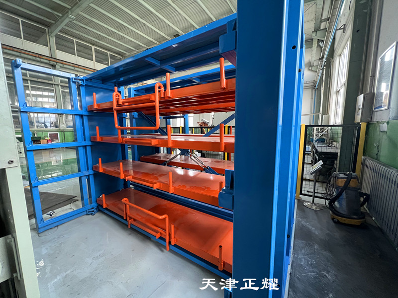 模具货架不仅分类清晰,而且存取时无需翻找,大大节省了查找时间。抽屉可以单人单手摇出,操作简便,即便是重型模具也能轻松应对。摇出后,便于吊车直接吊装到使用地点,整个过程省时省力,有效提升了工作效率。