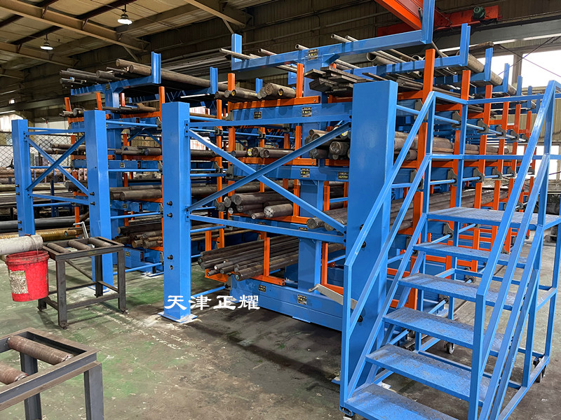 伸缩悬臂式圆钢货架的操作优势不仅体现在存取圆钢的便捷性上,由于悬臂可以伸缩,使得货架上的圆钢能够轻松地与吊车等设备对接。当圆钢被摇出到适当位置后,吊车可以直接将其吊装到使用地点,无需再进行二次搬运。这一操作过程不仅减少了人工的干预,还提高了作业的安全性。