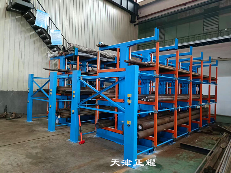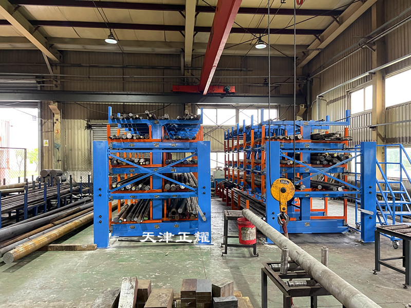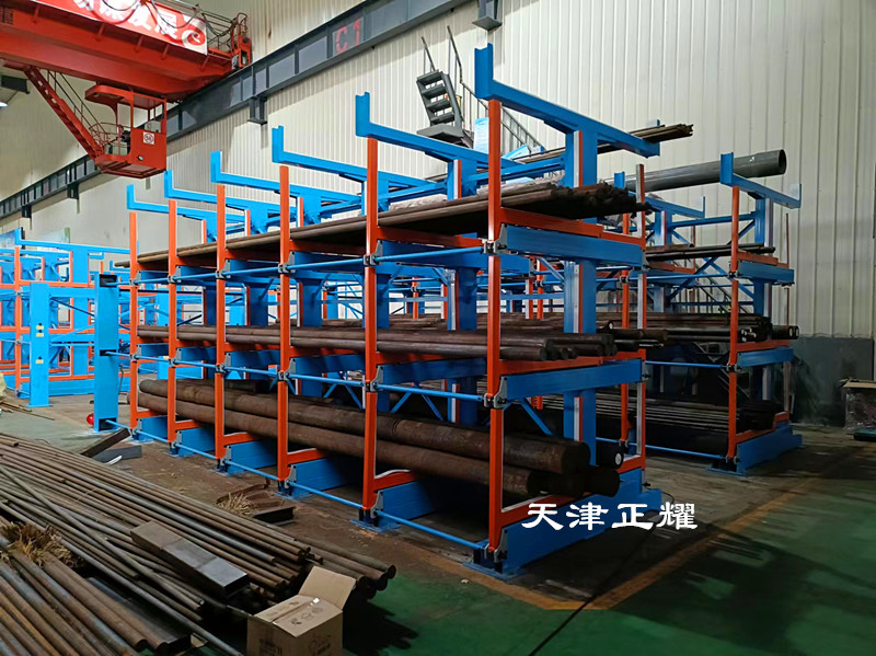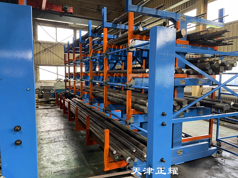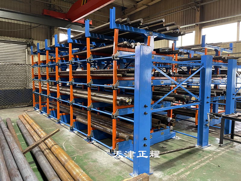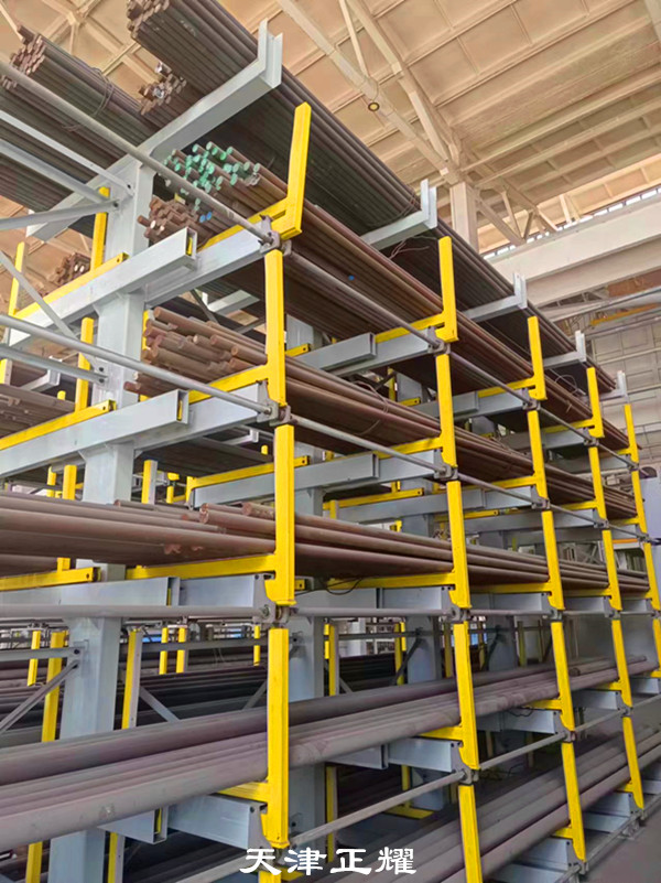 圆钢货架的核心在于其独特的伸缩悬臂式结构。其独特之处在于可以伸缩使用。这一设计不仅提高了货架的灵活性,还简化了圆钢的存取过程。当需要将圆钢存放到货架上时,只需将悬臂摇出,将圆钢放置在固定位置即可。而需要使用圆钢时,只需单人单手轻轻摇动,即可将重达6吨的圆钢轻松摇出。这一操作过程简单方便,既节省了时间,又减少了人工的使用,提高了工作效率。