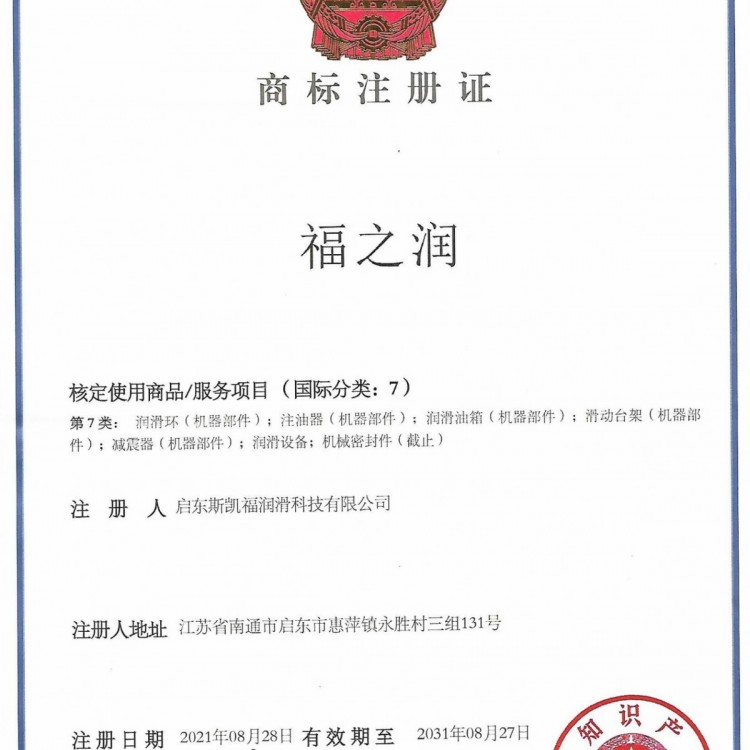福之润商标注册证
