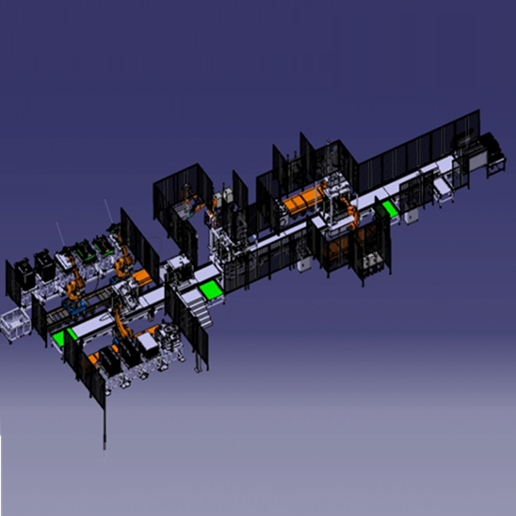 AGV料仓式上料、机器人/桁架与视觉系统及机械定位全自动堆叠、全自动穿螺杆、全制动拧紧、电堆在线气密检测、AGV将堆送至料仓,流线式生产,可单机、半制动、全制动。