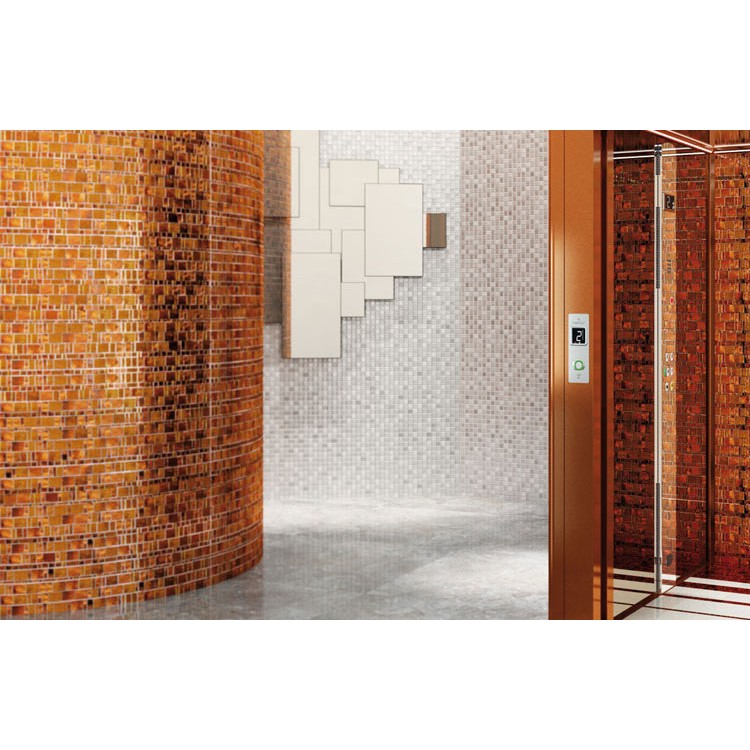 手工切割的玻璃质感的的马赛克,平滑颗粒及凹凸颗粒此起彼伏,始平面立体,超 强的流动感使家庭式电梯与众不动,新颖又独特。
