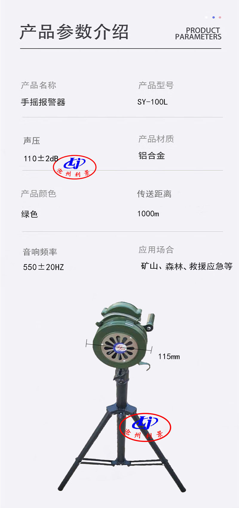 Cangzhou Lijing Environmental Protection Equipment Co., LtdPublished byHand cranked alarm SY-100L triangular bracket modelGallery Lib