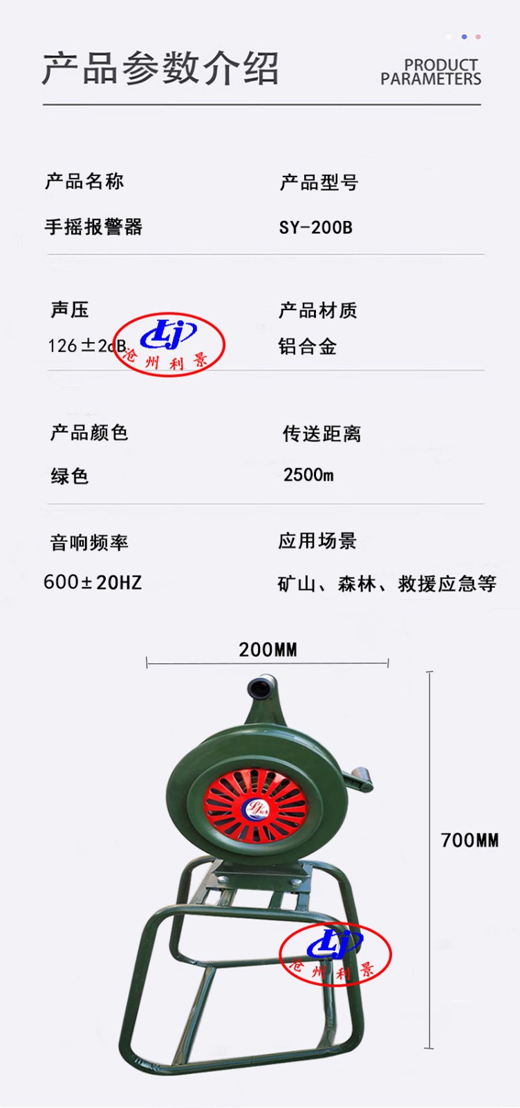Cangzhou Lijing Environmental Protection Equipment Co., LtdPublished byHand cranked alarm with base can be fixed SY-200BGallery Lib