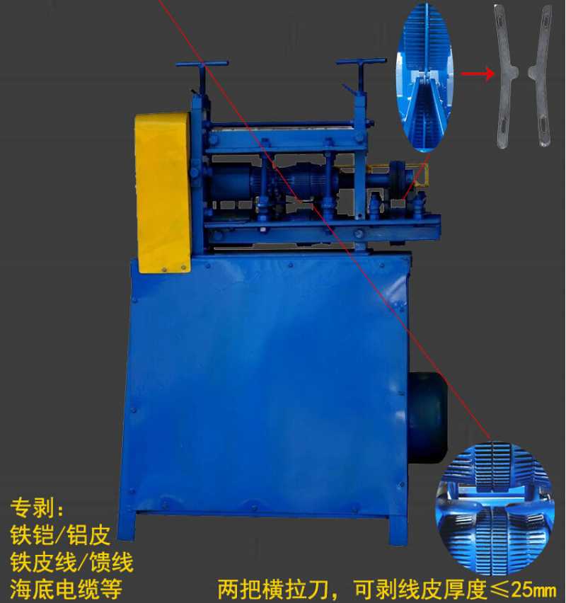 This machine is multifunctional, comprehensive, and has good performance. It adds five frame knives and three double wrapped tire socket holes on the basis of the KO machine, making the functions more subdivided and suitable for various types of wires, making it easier to strip various rubber cables. In addition, it can also strip single core or double core flat wires at once. Its stripping diameter range is (1-35mm), greatly enhancing the stripping function and making the function of each incoming hole more subdivided.