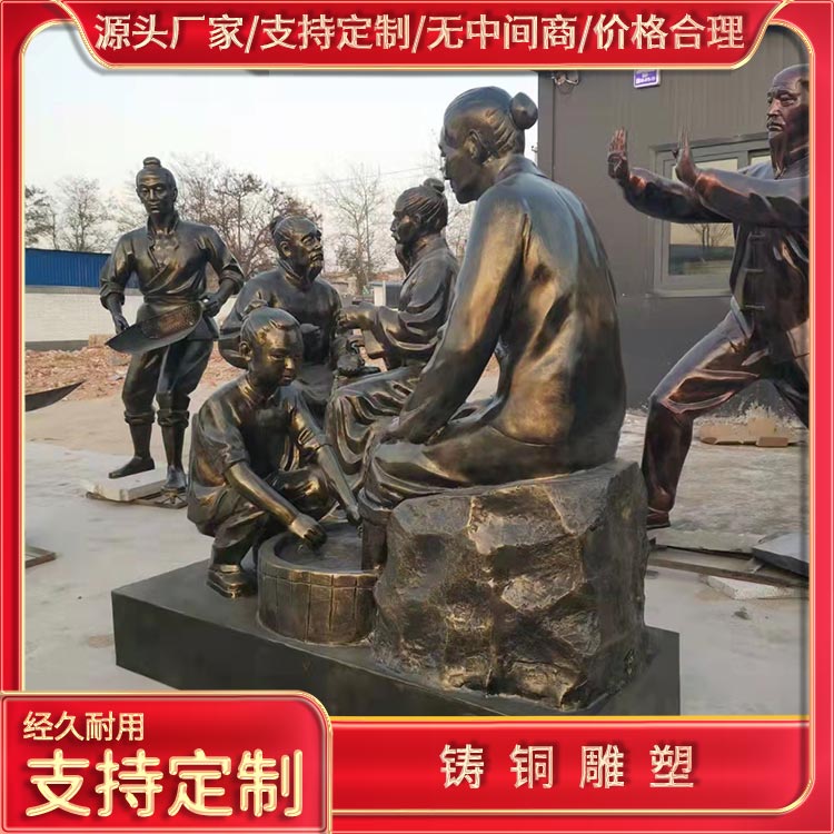 Casting bronze sculpture art primarily showcases the beauty of form, texture, and patterns, often used to depict mysterious and intimidating religious themes. The production of bronze sculptures typically involves several crucial processes: metal smelting, forging, carving, gilding, polishing, and applying red finish. The processes are quite complex and require meticulous craftsmanship. There are two casting methods for bronze sculptures: the lost-wax method and the mold method. Lost-wax method:1. Molding with wax; 2. Apply outer shaping materials; 3. Form an integrated casting mold.