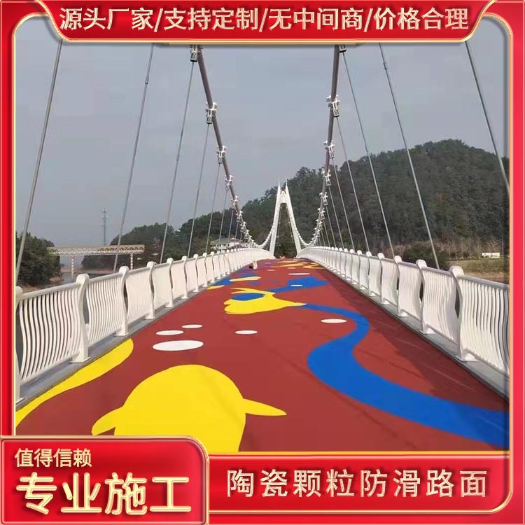 4. Durable Performance: The anti-slip colored ceramic granular road surface is made of specially formulated anti-slip surface adhesive and custom-baked colored ceramic granules. It offers excellent corrosion resistance and UV resistance during use. It has good corrosion resistance to gasoline, kerosene, diesel, or acidic and alkaline solutions, maintaining the road's anti-slip performance and extending its service life.