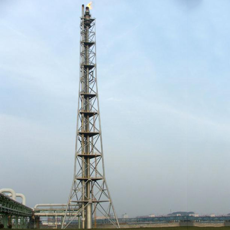 Self-standing and tensioned structures, widely used in chemical enterprises, oil departments, and gas emissions, with a height range of 10-200 meters. The torch tower frame is mainly