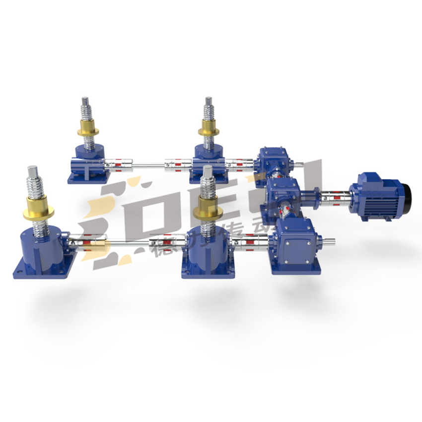 The lifting platform of the screw jack, be it a two, three, or four-way drive, we recommend using a single motor to power it, as each motor has a speed variance per minute. It's challenging to achieve synchronization and stability when using multiple motors.