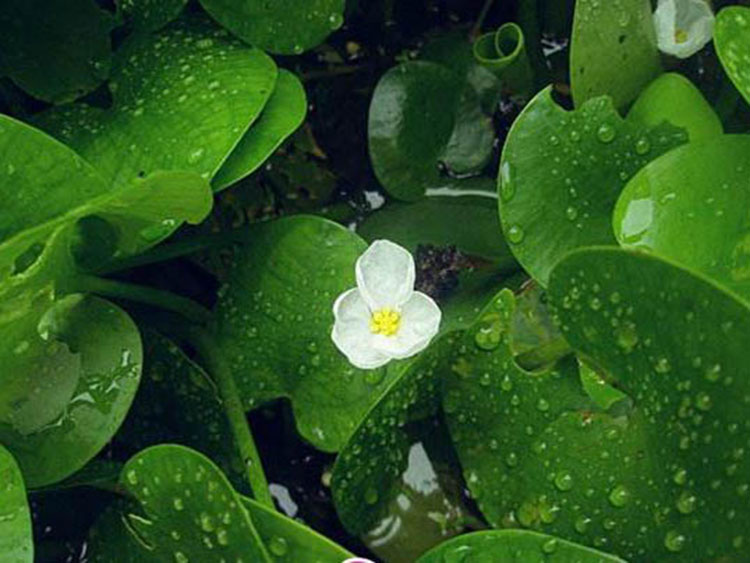Aquatic herb. The fibrous roots can reach up to 30 cm in length. Stolons are well-developed, with internodes 3-15 cm long, diameter about 4 mm, bearing buds at the top and producing overwintering buds. Leaves are clustered, often floating, occasionally extending above the water surface; leaf blades are heart-shaped or round, 4.5-5 cm long, 5-5.5 cm wide, with rounded apex, cordate base, entire margin, honeycomb-like aerenchyma on the abaxial surface, and stomata; leaf veins 5, occasionally 7, midrib distinct, forming an acute angle with the first pair of lateral main veins. Male inflorescences axillary; peduncles 0.5-3.5 cm long; two spathe, membranous, translucent, with purple-red stripes, containing 5-6 male flowers inside, only one opening at a time; pedicels 5-6.5 cm long; sepals 3, free, oblong, about 6 mm long, 3 mm wide, usually with red spots, especially at the apex, acute at the tip; petals 3, yellow, alternate to sepals, broadly obovate or round, about 1.3 cm long, 1.7 cm wide, slightly notched at the apex, narrowed at the base, with papillate prominences on the adaxial surface; stamens 12, arranged in 4 whorls, the innermost 3 are reduced, the outermost 3 are opposite to petals, the base is fused with the stamens of the third whorl, the second whorl is fused with the base of the reduced stamens of the innermost whorl, the outermost whorl and the second whorl are about 3 mm long, anthers about 1.5 mm long, the third whorl stamens about 3.5 mm long, anthers smaller, filaments with papillae on the adaxial surface, reduced stamens with papillae at the tip, hairy at the base; pollen spherical, with raised patterns on the surface. Small female spathe, containing 1 female flower inside; pedicels 4-8.5 cm long; large flowers, about 3 cm in diameter; sepals 3, rounded at the apex, about 11 mm long, 4 mm wide, usually with red spots; petals 3, white, with a yellow base, broadly obovate to round, larger than the petals of the male flower, about 1.5 cm long, 1.8 cm wide, with papillate prominences on the adaxial surface; 6 staminodes paired, opposite to the sepals; 3 glands, yellow, reniform, opposite to the sepals; style 6, each 2 deeply cleft, about 4 mm long, densely covered with glandular hairs; ovary inferior, incompletely 6-locular. Fruits are berry-like, spherical to oblong, 0.8-1 cm long, about 7 mm in diameter, with several grooves. Seeds are numerous, elliptical, with a gradually pointed apex; seed coat with many hair-like prominences. Flowering and fruiting period: August to October.