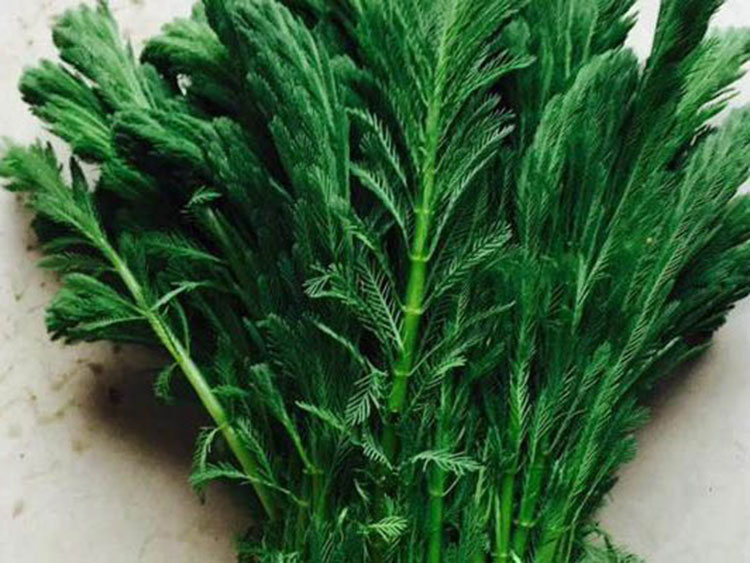 Fox Tail Rush, also known as Rotated Fox Tail Rush, is a robust, submerged perennial herb of the family Haloragaceae and genus Myriophyllum. The rhizome is well-developed, spreading in the mud at the bottom of the water, with roots at the nodes. The stem is cylindrical, with many branches. The leaves above water are alternate, lanceolate, robust, bright green, with wider lobes. In autumn, spike-like winter buds are produced in the axils of the leaves to overwinter. The bracts are pinnately comb-like in division. Flowers are unisexual, monoecious or bisexual, solitary in the axils of the水上 leaves, without stems, shorter than the leaves. The female flowers are born in the lower leaf axils of the submerged stems: pale yellow, filaments thread-like, extending out of the corolla after blooming. The fruit is broadly ovate, with 4 shallow grooves, with the apex having remnants of the calyx and style.
