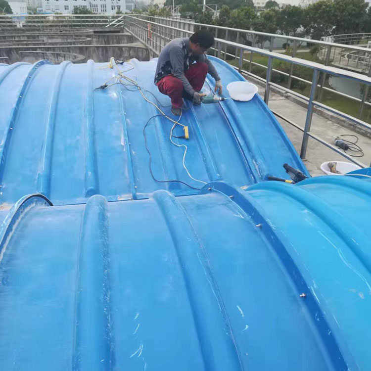 A fiberglass gas collection hood is a high-performance fiberglass cover for a sewage treatment pond, integrating waste gas recovery and composite insulation. It features strong corrosion resistance, excellent physical properties, good flame retardancy, aging resistance, and a long service life.