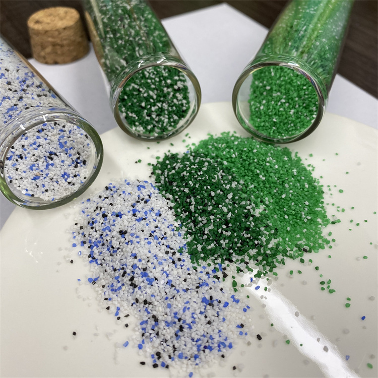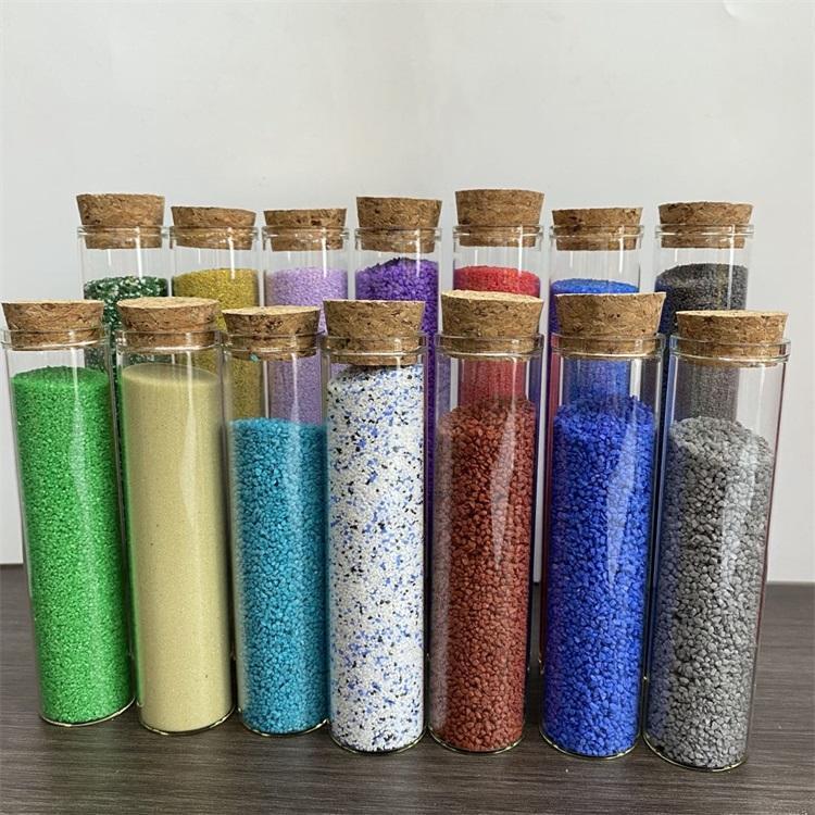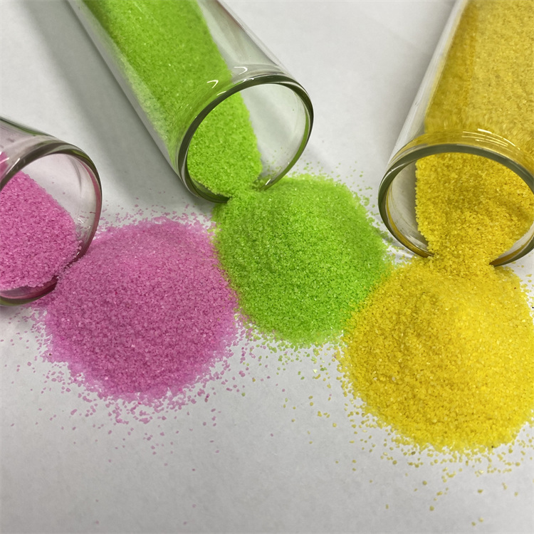 Color sintered sand has been applied in various decorative fields such as genuine stone paint, flooring, colored metal tile granules, interior anti-slip color granules, waterproof membranes, bicycle tracks, aquarium decorative sand, foundation sand, sand painting crafts, and children's entertainment sand.