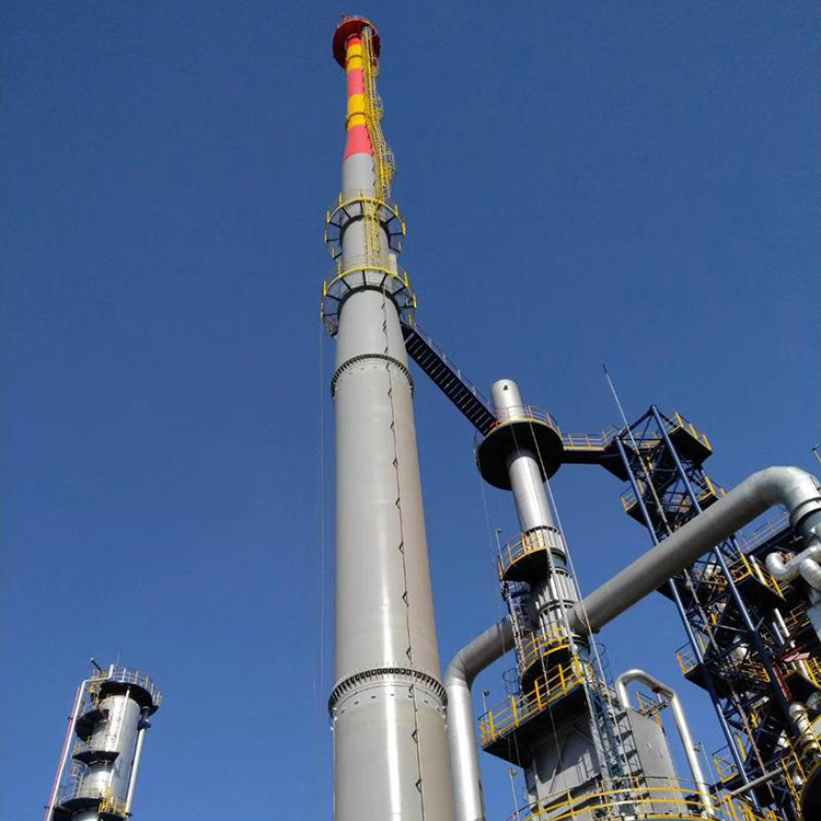 Available in four-column angle steel structure and three-column steel pipe structure, the chimney is secured with a clamp in the middle.