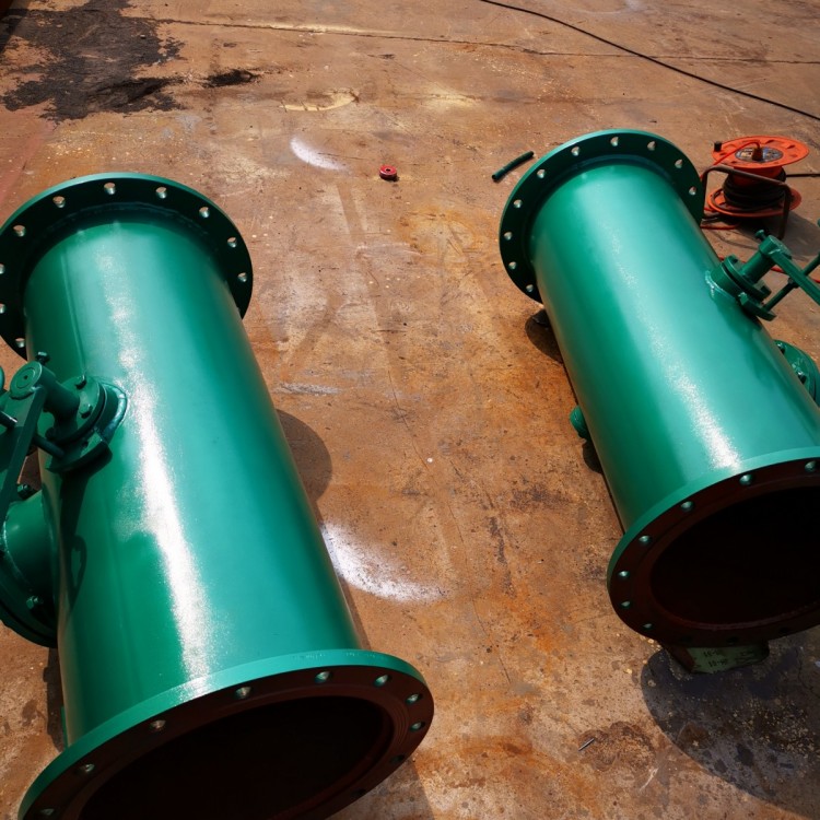 分汇器是一个三通(管)阀。通过其中导向板的切换可使胶球进入需要清洗的一侧凝汽器中。也可作为收球网胶球引出管的汇合和接球管的分流三通管使用。
