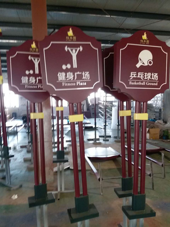 The background color of the signboards should be similar to the guide sign colors in the respective area, and the planning of specifications should be as comprehensive as possible. It is essential to have an abundance of guide signs, based on scientific planning, in busy distribution centers, transportation hubs, ports of entry and exit, and densely populated intersections. The guide signboards should be positioned at both ends of walls to form intersections, and should be securely placed in pedestrian stable positions, stable forms, and stable specifications.