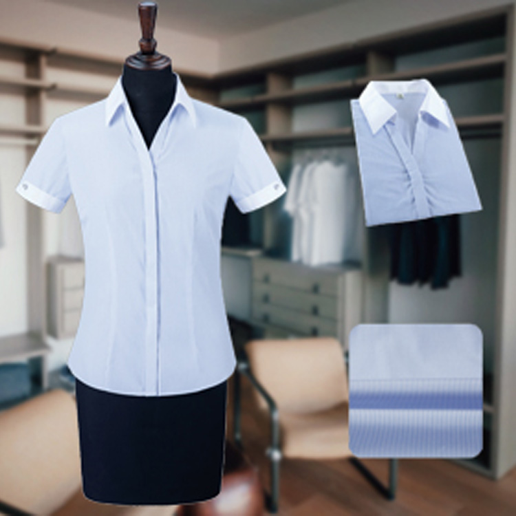 Women's V-neck concealed pocket short-sleeve shirt for workwear, custom-made shirts, custom work uniforms, Guangzhou Workwear Factory, Guangzhou Shirt Factory, Guangzhou Shirt