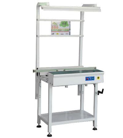 Product Parameters: Main Function Used for connection between SMT and AI production lines, suitable for PCB damping, detection, testing, or manual insertion of electronic components. This unit is used to connect with SMT productions line SMT Transfer Bench Product Descriptioncription1. Modular design 2. Square tube framework with electrostatic powder coating on the surface, and reinforced body design for enhanced stability. 3. The instrument panel facilitates manual assembly and material preparation, featuring ergonomic design to minimize arm fatigue; Ergonmic design table for parts place and arm rest 4. Variable Speed Control 5. Smooth parallel width adjustment with stainless steel threaded rod 6. Standard SMEMA four-core signal cable, ready for direct connection with other equipment
