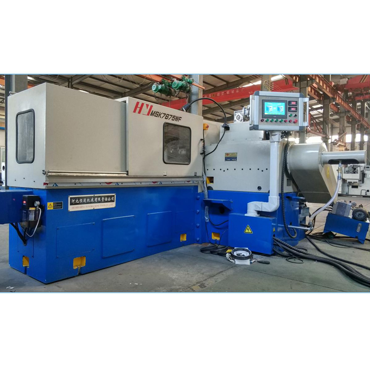 2. The machine tool grinding head feed system is numerical control, featuring high positioning accuracy and abrasive wheel wear compensation. The numerical control system is in PLC + positioning module configuration, with touch screen input of parameters, buttons laid out as electronic handwheels, offering easy operation and learning. The feeding架 feed system uses a servo numerical control system, ensuring uniform feeding and unloading speed.