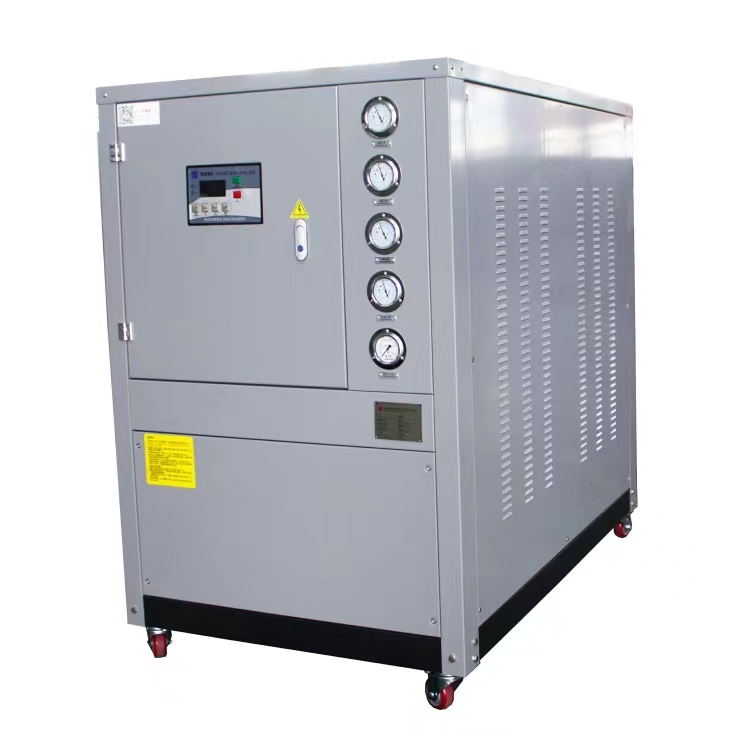 1Air-cooled ice water machines include water-cooled box-type chillers, featuring a water-cooled box design with a water tank, suitable for placement in production workshops. Air-cooled ice water machines must be placed in a well-ventilated environment.