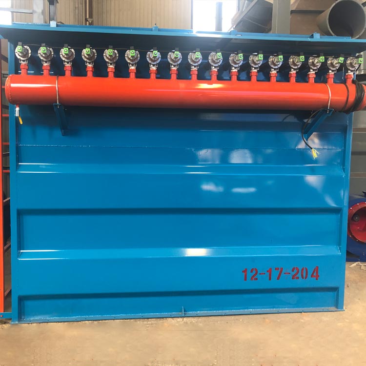 The pulse jet dust collector refers to the method of removing dust attached to the filter medium (bag or cartridge) by blowing compressed air; the dust collector may have several groups of pulse valves depending on its size, controlled by a pulse controller or PLC. Each time, one group of pulse valves is opened to remove the dust from the bags or cartridges it controls, while the others continue normal operation. After a certain period, the next group of pulse valves opens to clean the next section. The dust collector is composed of parts such as the hopper, upper, middle, and lower boxes, with the upper, middle, and lower boxes being separated compartments. During operation, the dusty gas enters the hopper through the inlet duct, with coarse dust particles falling directly to the bottom of the hopper. Fine dust particles, following the gas flow, turn upwards and enter the middle and lower boxes. Dust accumulates on the outer surface of the filter bags. The filtered gas enters the upper box to the clean gas manifold-exhaust duct, and is then exhausted to the atmosphere by the exhaust fan. The cleaning process involves first cutting off the clean gas outlet duct of the compartment, putting the bags in a state with no gas flow (compartment stop wind cleaning). Then, the pulse valve is opened to use compressed air for pulse-jet cleaning, with the valve closure time long enough for the dust stripped from the bags to settle in the hopper after blowing, avoiding the phenomenon of dust re-attaching to the surface of adjacent bags after detaching from the bag surface. This ensures the cleaning of the bags and automatic control of the exhaust valve, pulse valve, and ash discharge valve by a programmable controller. The dusty gas enters through the inlet, and when passing through the hopper, some large particles of dust are separated out due to inertia and gravity and fall directly to the bottom of the hopper. After passing through the hopper, the dusty gas enters the filter bag filtering area of the middle box, where the gas passes through the bags, and the dust is trapped on the outer surface of the bags. The purified gas enters the upper box through the bag mouth and is then discharged through the outlet.