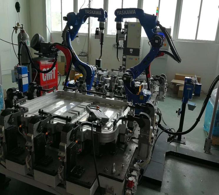 Ethernet digital communication is used for welding materials and connecting with robots.
