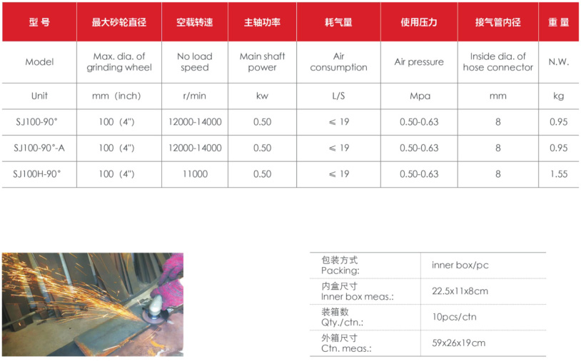 Pneumatic angle grinder is mainly suitable for grinding the groove before welding and the surface after welding in welding engineering; Grinding of metal surfaces and cutting of metal sheets and small steel materials. When in use, steel wire wheels can be replaced or different grit grinding wheels, polishing cloths, etc. can be pasted on the grinding disc according to different needs; Can be used for rust removal, polishing, and grinding of metal surfaces.