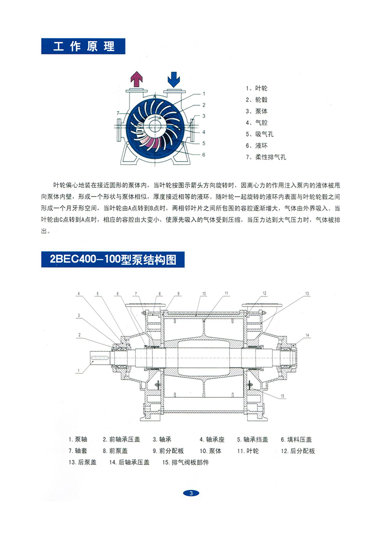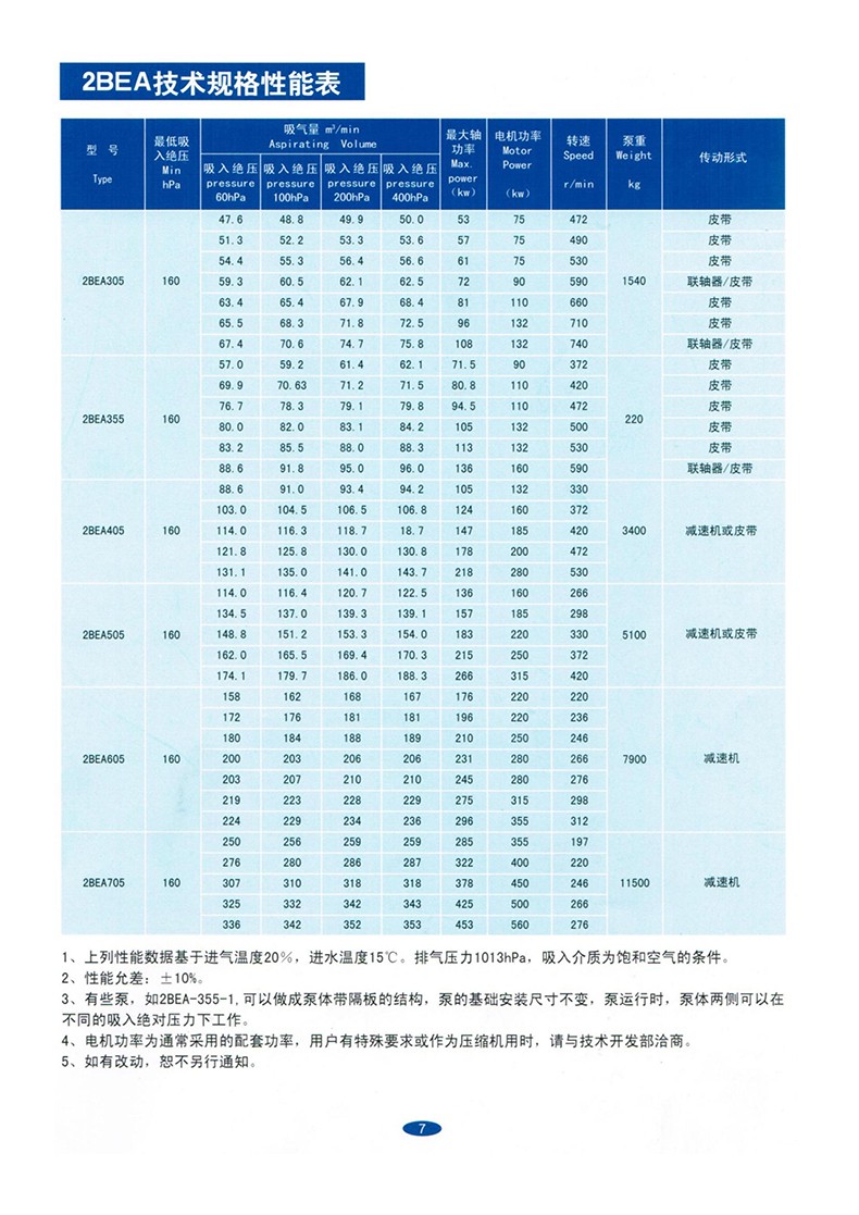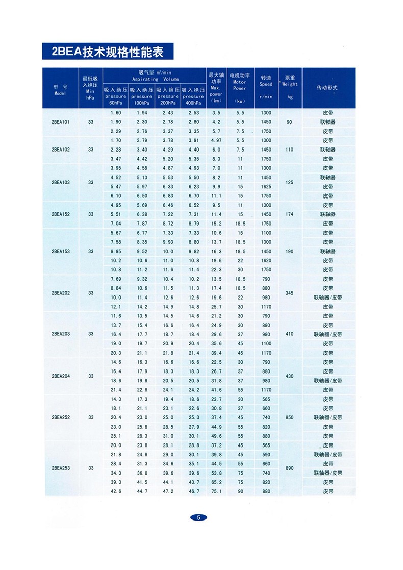 1. The 2BE water ring vacuum pump is capable of long-term continuous operation within the ambient temperature range of 5-40 ℃ and under inlet pressure less than 1330Pa.