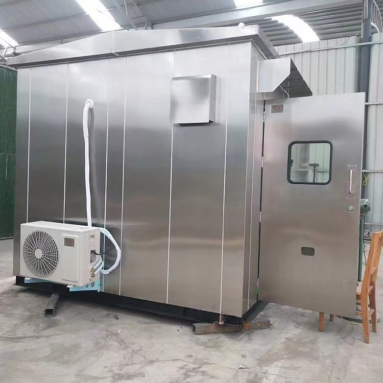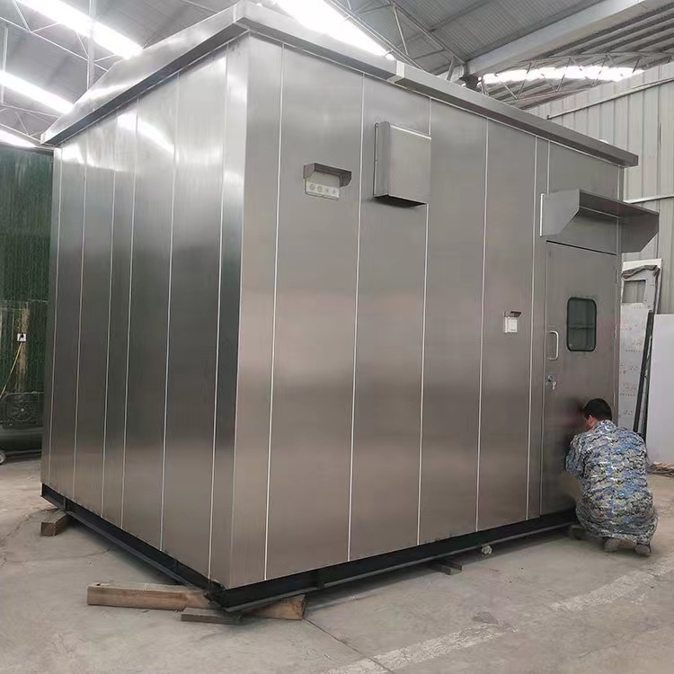 分析小屋的骨架、底座和屋顶为金属构件,采用型钢焊接而成,有足够的强度及刚性,保证分析小屋在荷载、起吊、平移和运输时稳定性。采用∏型板式拼装结构,外墙板使用不锈钢板(304SS,使用不锈钢拉丝覆膜板),或镀锌钢板,使用镀锌钢板时必须进行表面喷涂处理,喷涂颜色为白色或国际灰色,内墙面板和天花板宜使用1.5mm~2.0mm不锈钢板屋顶面板须进行防雨设计,可使用搭扣结构的拼装式防雨设计或平面焊接式防雨设计。内外墙和内外顶之间填充阻燃性保温材料(矿岩棉等),保温层厚度在70~75mm(3in),严寒或酷热地区应加厚至80~85mm。地板为防滑金属板4~6mm钢板制作,材料根据用户要求可使用花纹不锈钢板,也可使用花纹镀锌钢板或热轧钢板,使用镀锌钢板或热轧板必须进行表面喷涂处理。