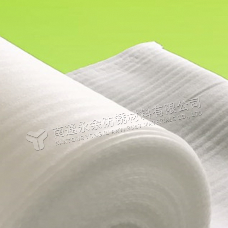 The anti-rust film base material is made of pearl cotton EPE foam infused with anti-rust material, designed for cushioning auto parts, protecting products from external damage. It is flexible, high in strength, can be used alone to save anti-rust costs, and can also be used in conjunction with its vapor phase anti-rust products.