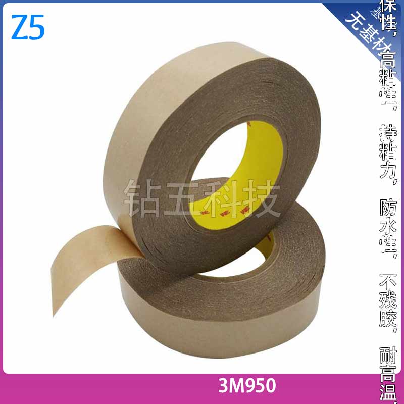 Summary: 3M950 is a non-backing double-sided tape from 3M's range, belonging to the 300 series high-strength acrylic adhesive system. It has a thickness of 0.13MM and is transparent, featuring strong adhesion. It is widely used on nameplates, flexible circuit boards, heat sinks, and other products, capable of replacing traditional fastening methods like screws and tacks, thereby enhancing product aesthetics.
