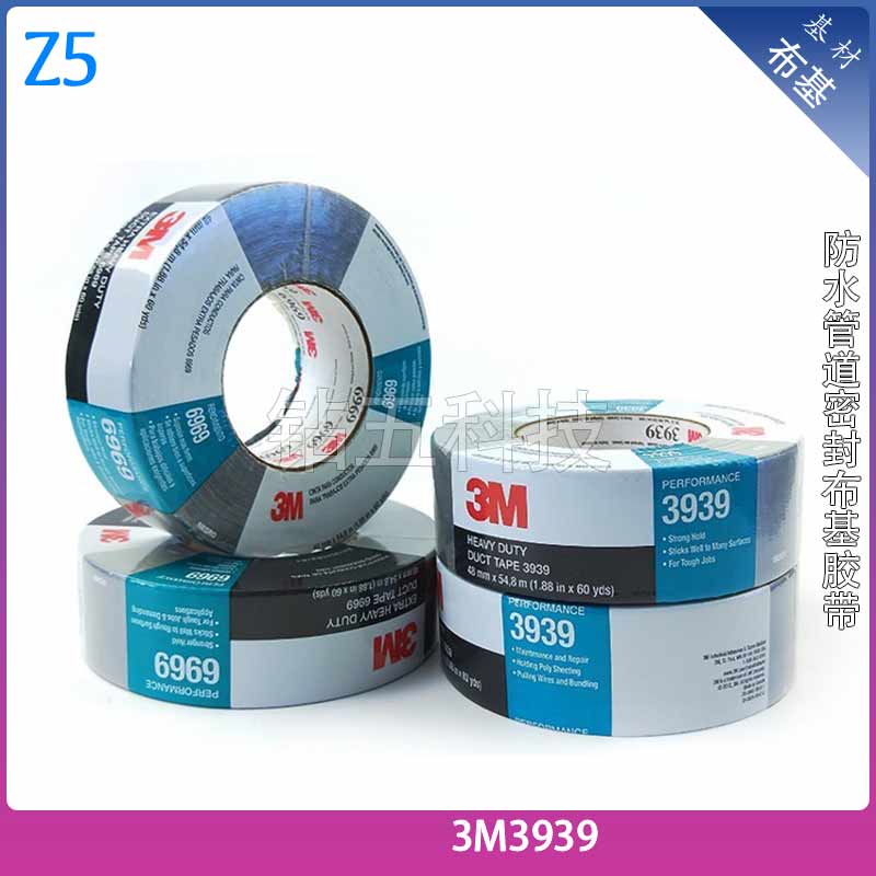 Summary: 3M3939 Bucy Pipe Tape, available in black and silver, with high molecular weight coated fabric backing and rubber adhesive. Suitable for pipe sealing, plastic film sealing, repairing hoses, carpet fixation, etc. It bonds well with many surfaces. Waterproof and durable, resistant to moisture and environmental changes.