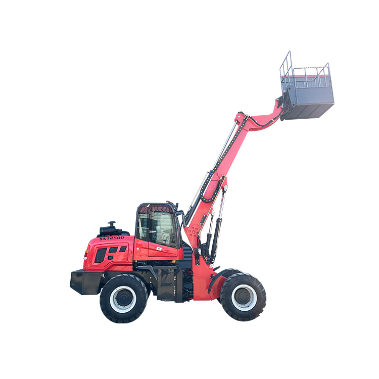 Maintenance注意事项 for the Multi-functional Telescopic Arm Loader include: Regular cleaning and maintenance of the loader equipment, timely inspection and adjustment, and securing loose parts to prevent increased wear or loss of components due to loosening. Prohibition of parking the loader in areas with open flame or high temperatures to prevent tire overheating and accidents. When inflating tires using a combination valve or air reservoir, the loader operator must not stand in front of the tire to avoid injury. Before using the oil cylinder of the telescopic tube loader, perform a full extension and retraction test for 5 cycles, then proceed with the equipment operations. This helps to exhaust air from the system, preheat all systems, and effectively avoid air or water in the system, which can cause gas (or combustion) inside the oil cylinder cylinder, damaging the seals and causing internal leakage and other malfunctions.