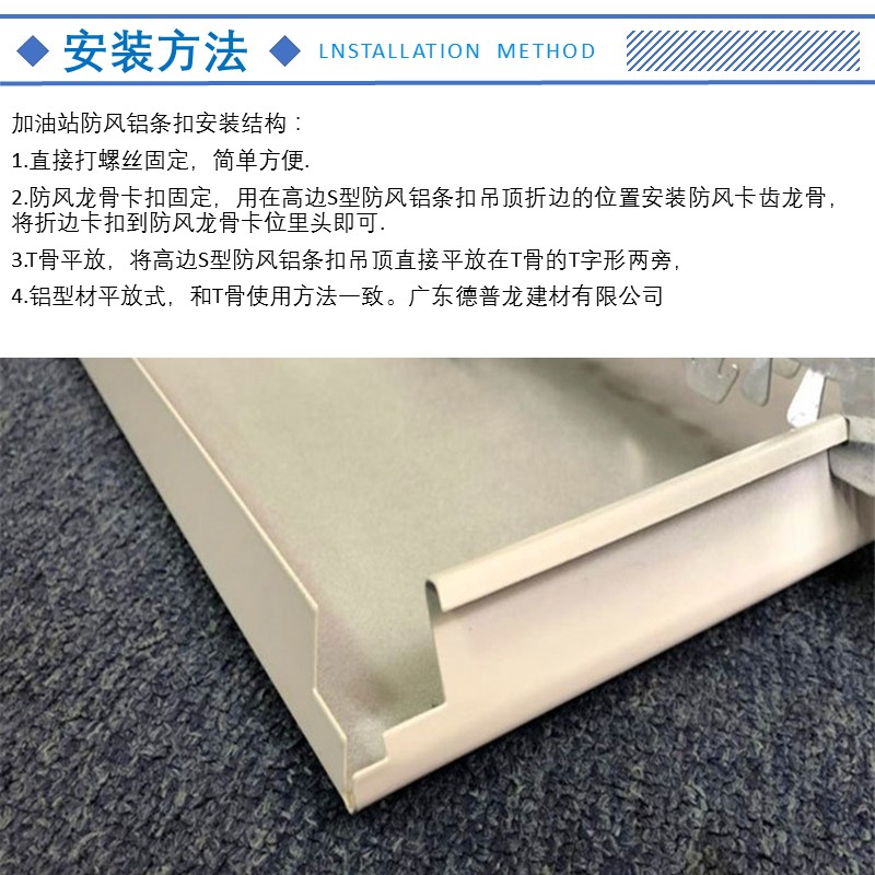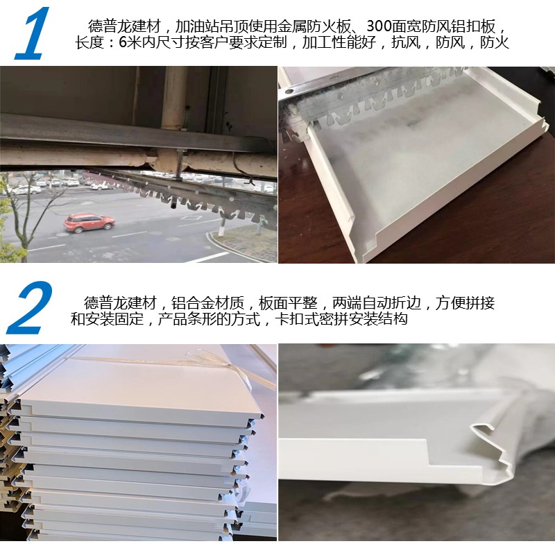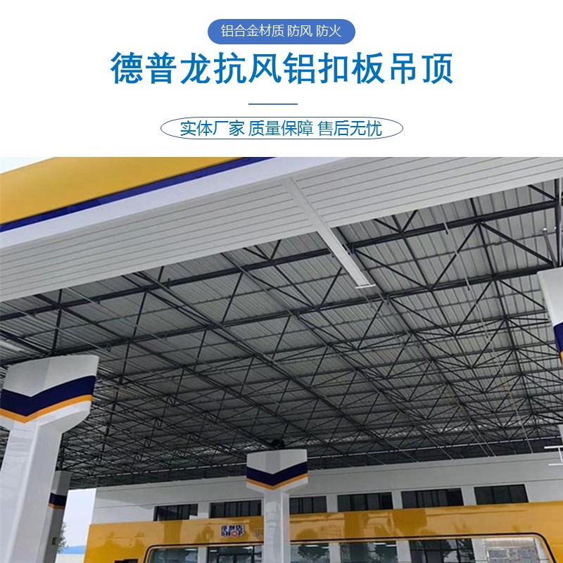 300 ft. Aluminum Strip Fasteners - Windproof Type for Gas Station: The gas station aluminum ceiling is at the forefront of fashion, now expanding across cities, towns, and villages domestically and internationally. The decoration of gas stations is becoming more diverse, fashionable, and people-oriented. Whether it's PetroChina, Sinopec, CNOOC, China Hualu, Great Wall lubricants,昆仑油, Castrol, Yueneng Energy, and a series of brands, Guangdong Deplong Building Materials can tailor-made products according to the construction standards of brand gas stations, hydrogen stations, gasoline stations, and gas refueling stations.Excellent processing performance, high fire resistance, and a long, tall, white design style, this model is a high-quality canopy decorative material for gas stations.