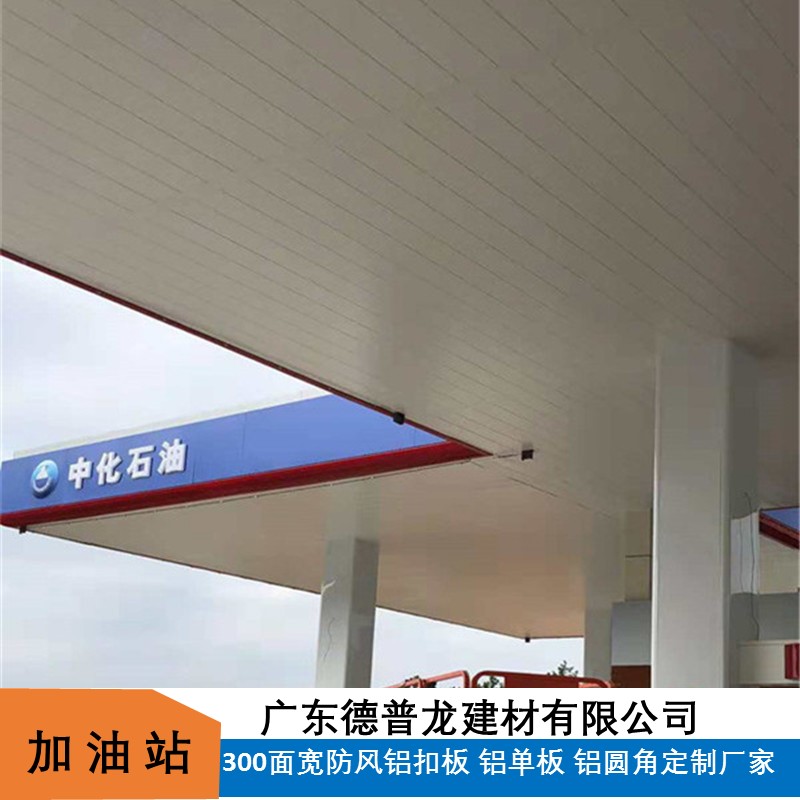 Gas Station Building Ceiling Decoration - Metal Ceiling, 300 feet wide windproof aluminum strip, mainly made of aluminum alloy, thickness generally 0.8-1.0mm, windproof aluminum strip panel