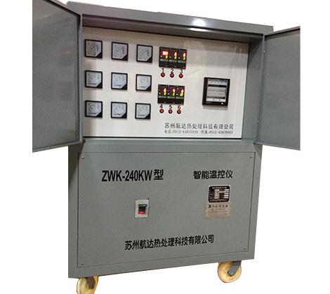 The ZWK-240KW model is a state-of-the-art, fully-featured temperature control device. It employs a PIV industrial computer as the main unit with interface circuits, a 15" color LCD display, and control software developed for Windows 2000. Key control functions include expert PID control and adaptive fuzzy control, with 12 loops that can be freely combined to track 12 curves. It offers 20-stage process curve settings with online modifications, power failure breakpoint protection, and hot start functionality. Silicon-controlled rectifier zero-triggering for power adjustment or phase shifting voltage regulation is available. Monitoring features include curve setting, real-time curve, and historical curve display and recording, dynamic parameter tables, and bar graph displays, along with voice alarm for faults. Management functions include storing process curves, displaying, saving, and printing historical curves, and features a paperless recorder. It is easy to operate, resistant to industrial field interference, and highly adaptable.