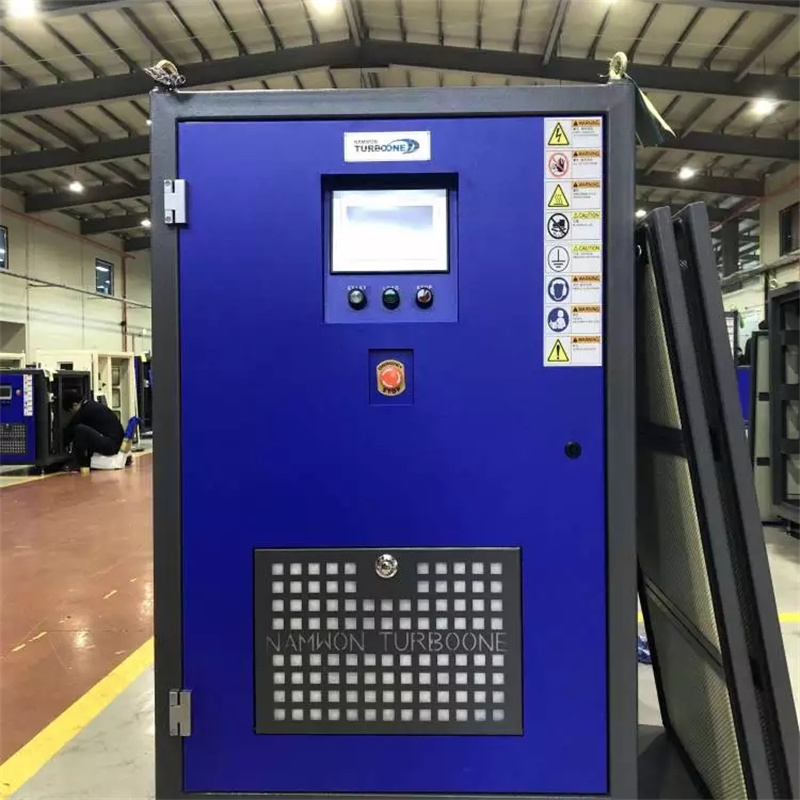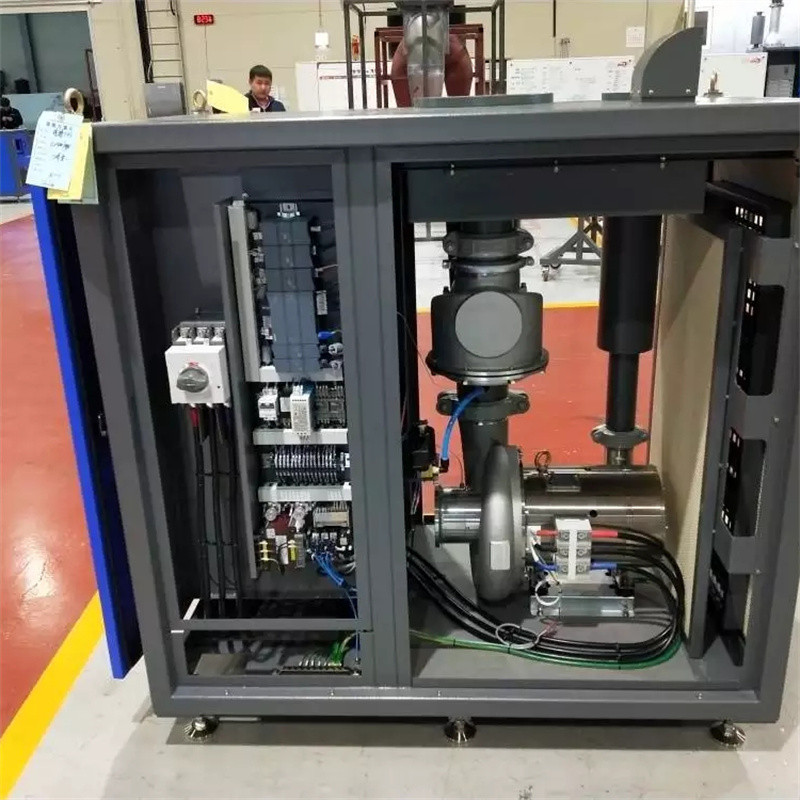 The air悬浮blowers use a variable frequency drive to adjust the airflow, with a range of 50%-99%. Within this range, the blower does not exhibit resonance. The air悬浮blowers feature air悬浮bearings, including radial bearings and thrust bearings, among other components. During operation, there is no physical friction between the rotating shaft and the bearings, achieving smooth rotation. The air悬浮bearings can withstand over 20,000 starts. In the event of an unexpected power outage, the air悬浮blower will not cause any substantial impact on the blower bearings. Each set of blowers is directly driven by the motor, with a single-stage centrifugal impeller, equipped with radial/axial bearings and other necessary accessories. The airflow of the air悬浮blower can be adjusted from 50% to 99%. The blower inlet duct and cooling fins are made of cast aluminum alloy or better material, while the outer housing should be powder-coated steel plate. The outlet is connected to the pipe with a flexible joint.