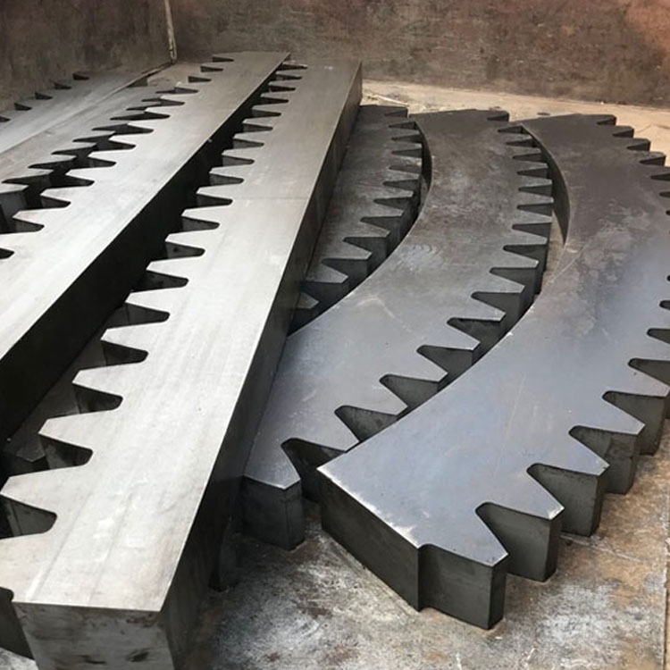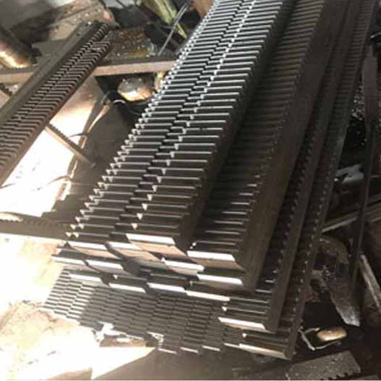A rack is a special type of gear with teeth distributed along a strip shape. Racks come in straight and helical varieties, respectively pairing with straight and helical cylindrical gears; the rack's tooth profile is a straight line rather than a involute (for the mating surface, it is a plane), akin to a cylindrical gear with an infinite radius of the pitch circle.