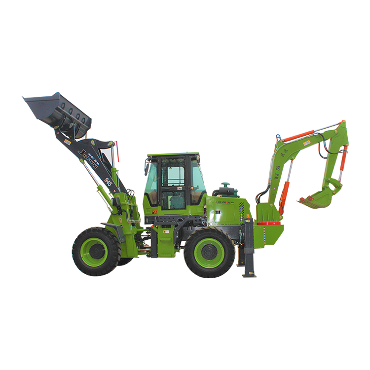 The general mining loader (double-duty) is primarily powered by a wheeled tractor, with loading and digging attachments added to the front and rear, respectively, increasing the machine's length and weight. Therefore, it should avoid high speeds or sharp turns while in motion to prevent accidents. Do not coast downhill in neutral. When the hydraulic piston rod of the bucket and handle is fully extended, it allows the bucket to close to the boom, placing the digging attachment in its shortest state, which is beneficial for travel. During travel, the support legs should be fully retracted, the digging attachment should be securely fastened, the loading attachment should be lowered, and the hydraulic piston rod of the bucket and handle should remain fully extended.