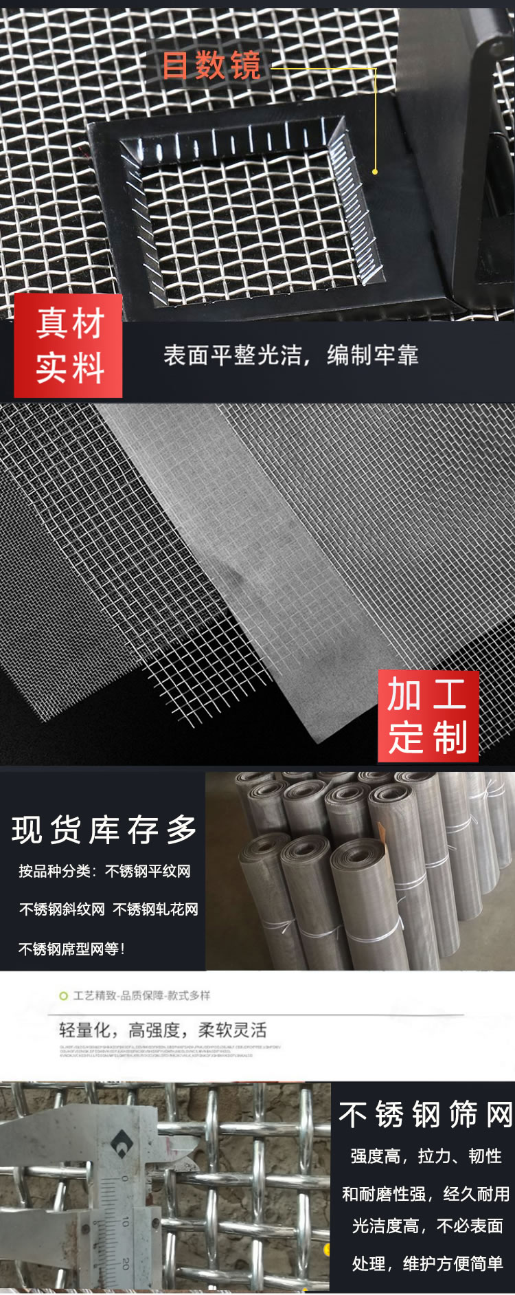 Mineral sieve mesh, metal woven mesh, stainless steel sieve mesh, Liche's in stock, custom shapes available.