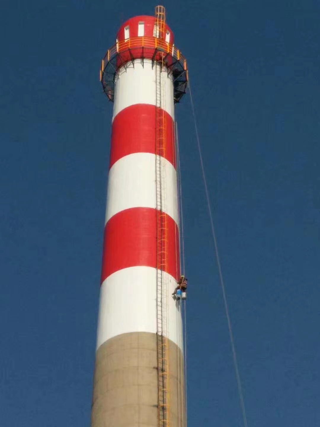Chimney painting with navigation marksUtilizing advanced technologies such as "scaffold-free construction, continuous production, and suspended work at heights," we provide you with:
