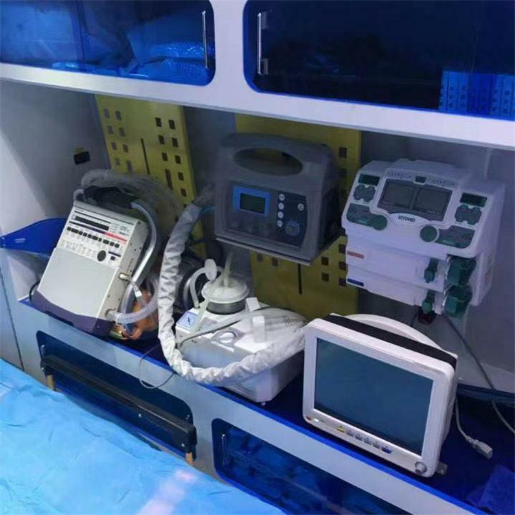 The vehicle is equipped with an automatic boarding stretcher bed, fully automatic respirator, ECG monitor, suction apparatus, breathing bag, oxygen system, blood pressure and heart rate monitor, and first-aid equipment. The company has multiple ambulances, and medical staff can be chosen and equipped according to the patient's needs for on-site care. With our state-of-the-art equipment, professional team, and reasonable pricing, we can quickly and safely transport patients to destinations across the nation. Choosing our services is a wise decision!