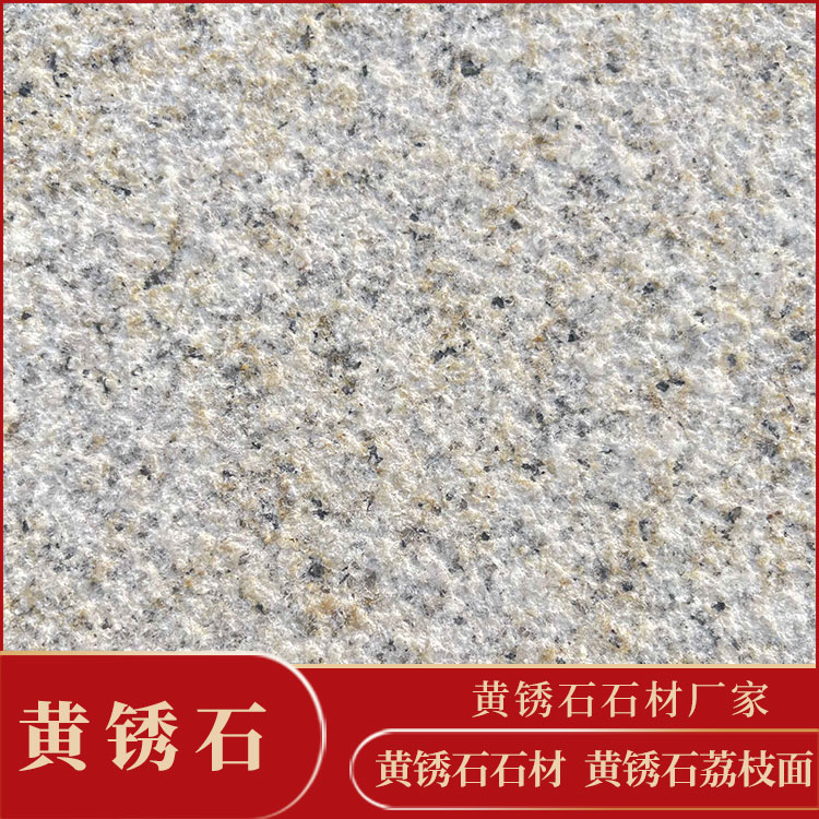 Yellow Rust Stone Lichee Surface Stone is crafted by striking the stone surface with a hammer shaped like a lichee peel, creating a rough surface resembling the lichee peel, commonly seen on sculptures or plaza stones. It is available in two types: Machine Lichee Surface (machine-made) and Hand Lichee Surface (handcrafted). Generally, the Hand Lichee Surface is finer than the Machine Lichee Surface, but it requires more labor and time.