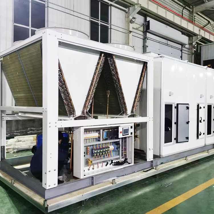 The all-in-one direct expansion air purification unit allows the refrigerant to undergo heat exchange directly with the air to be treated, without undergoing secondary heat exchange, i.e., refrigerant-air. In contrast, the currently common large-scale central air conditioning systems, which are composed of chilled water units and air conditioning terminal units, have a different heat exchange method from the direct expansion air conditioning units, which is: refrigerant-water-air. That is, the refrigerant absorbs heat from the water first to generate chilled water, which is then transported through pipelines to the room's fan coil units and other terminal units. The fan inside the unit circulates air, causing the indoor air to exchange heat with the chilled water inside the coil, producing "cool air" that is blown out.