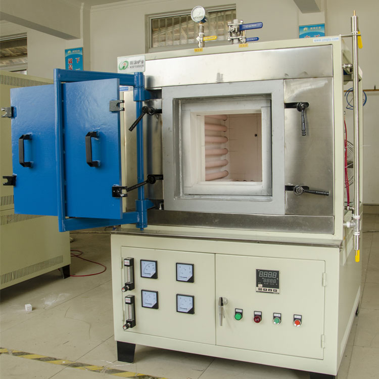 The 1200C vacuum atmosphere furnace utilizes imported resistance wire as the heating element, featuring a double-shell structure and a 30-step temperature control system. It employs phase-shifting triggering and silicon-controlled rectifier control. The furnace chamber is lined with alumina polycrystalline fiber material. The box-type atmosphere furnace is equipped with an air-cooling system between the double shells for rapid temperature rise and drop. The entire outer shell is sealed, with the lid sealed using silicone putty. The furnace door is fitted with a water-cooling system and features a silicone pad controlled by a float flowmeter to regulate the intake flow rate. This furnace boasts balanced temperature distribution, low surface temperatures, fast temperature rise and drop rates, and energy-saving features, making it an ideal device for high-temperature atmosphere sintering, atmosphere reduction, CVD experiments, vacuum annealing, melting, and analysis in universities, research institutions, and industrial enterprises.